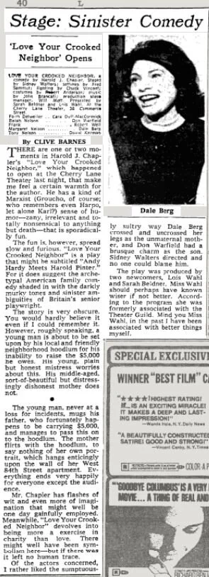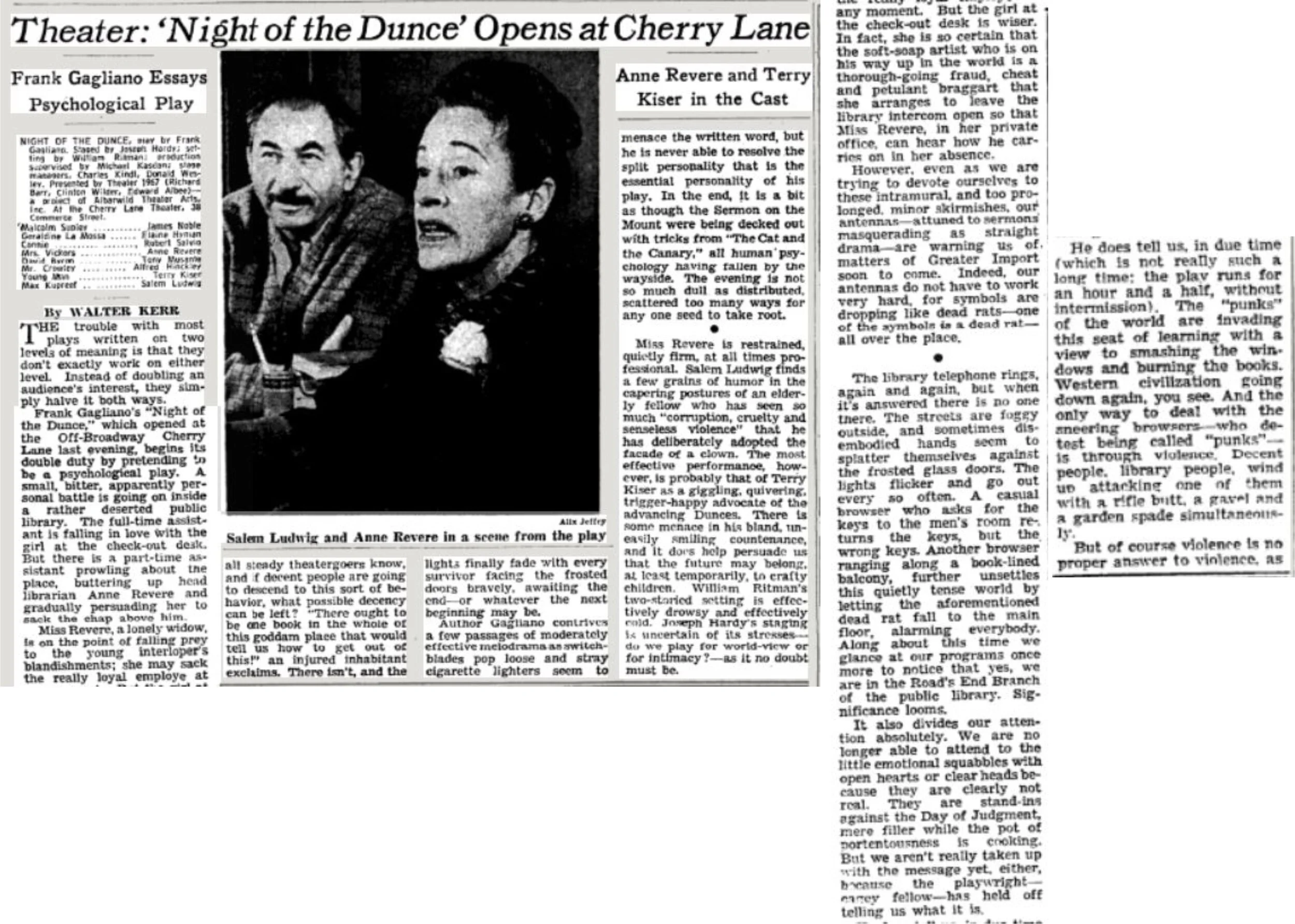 with James Noble, Elaine Hyman, Robert Salvio, Anne Revere, Tony Musante, Alfred Hinkley, Terry Kiser, Salem Ludwig